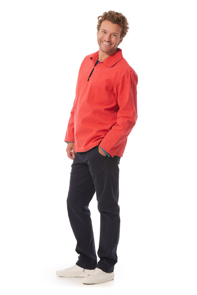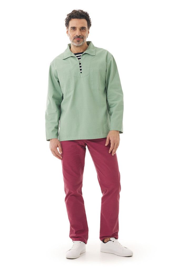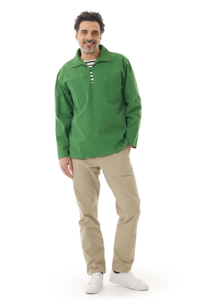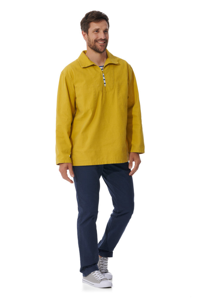 The Cachou smock is a typical Breton fishermen garment, re-imagined by Mousqueton who have revisited the famous canvas smock.